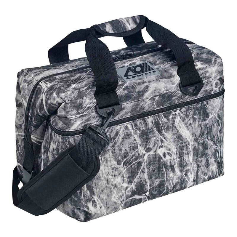 AO Coolers Mossy Oak Elements is perfect for your fishing and outdoor adventure. The Elements pattern is licensed by Mossy Oak and is a digitally enhanced 3D photo-realism that produces lifelike recreation of the natural environment. AO Coolers are guaranteed to never leak or sweat and have twice the insulation of other soft-sided coolers. The inner insulation is 3/4″” thick, high density, and closed cell foam. The high quality eco-friendly TPU liner is resilient to impacts, abrasions, tears, weather and more. The combination creates a cooler that will hold ice for 24 hours in 100° heat. The soft exterior won’t scratch up your gel coat or tear up any upholstery. The cooler will lay flat when not in use.Â