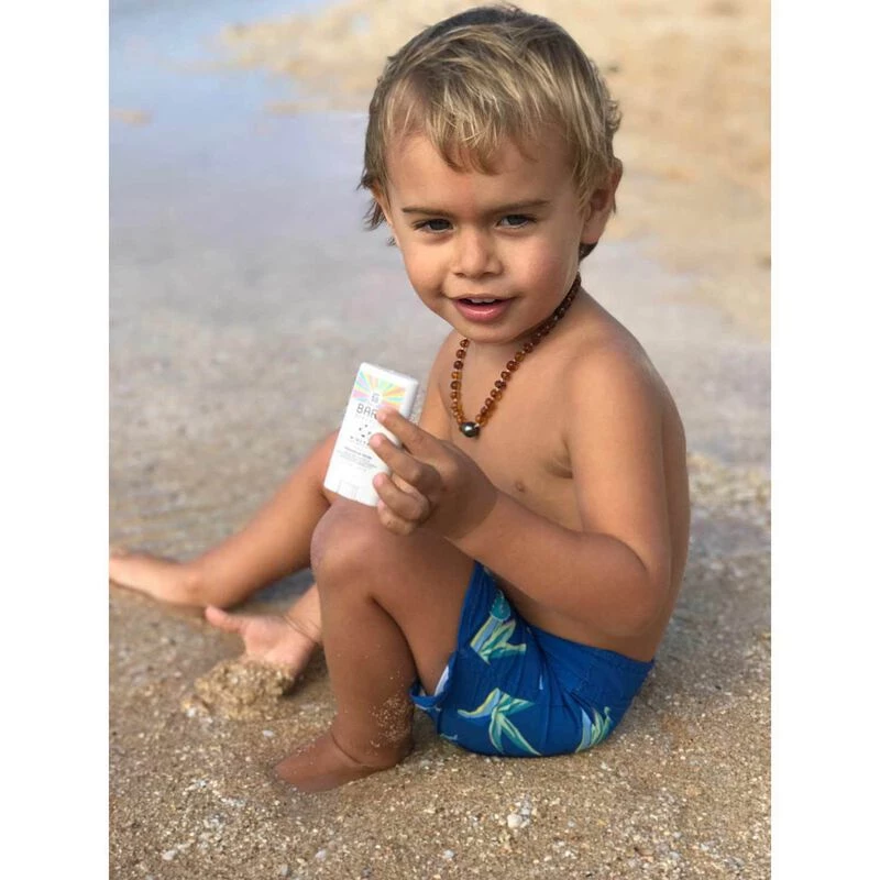 An extra sensitive broad spectrum UVA/UVB mineral SPF 50 baby sunscreen stick that’s free of active chemical sunscreens and synthetic fragrances. This easy-to-apply mineral baby stick blends gentle, non-nano zinc oxide, which screens physically not chemically with soothing ingredients such as Coconut Oil, Meadowfoam Oil, Shea Butter and Chamomile Extract.