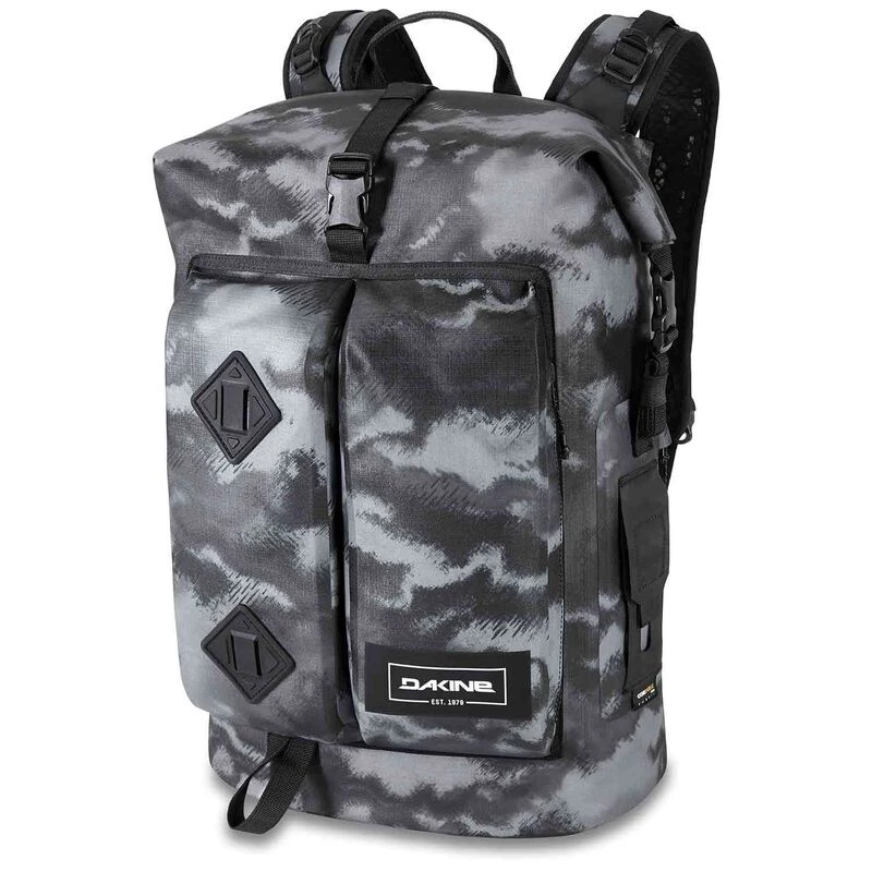 Dakine’s Cyclone II Backpack is rugged, comfortable to wear, and offers plenty of waterproof storage. As well as the extra large, waterproof main pocket with roll-top closure, it has 2 welded front access pockets with water resistent zippers for quick access items, and a separate waterbottle pocket.