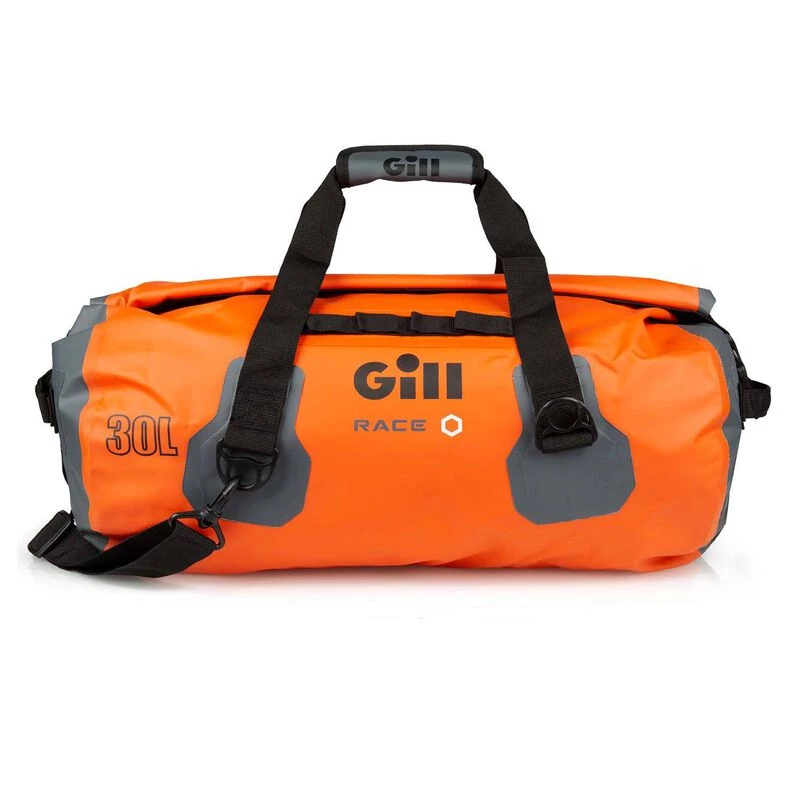 This Race Team Bag is made of puncture-resistant, 100% PVC tarpaulin with stitch-free, high frequency welded seams and a watertight roll-down closure so you get the utility of a 100% waterproof dry bag, only in a better-looking form that coordinates with the rest of your go-fast Gill gear.
