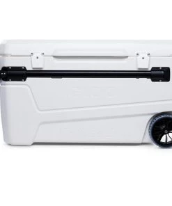 Enjoy refreshments at the game or the lake with the Igloo Glideâ„¢ 110-qt. Marine Wheeled Cooler with Telescoping Handle. The cooler’s extra-large size holds up to 110 qt. , while Ultratherm® insulation in the body and lid keeps ice for 5 days at 90°F.