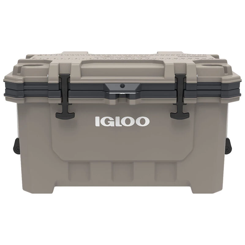 On a heaving deck or at a rustic camp site, rugged IMX coolers are designed to stand up to rough conditions and keep their contents cold. Ice retention is maximized by Cool Riser Technology® and Ultratherm® insulation in the body and lid. Usage is made easy by marine-grade rubberized lid latches and self-stopping integrated hinges that keep the lid open for easy access to contents. Other features include molded-in non-slip steel braided cable side handles, anti-skid feet, lockable lid loops, stainless steel locking plate, bottle opener, four self-draining cup holders built into lid. Anglers are kept honest by the fish ruler molded into the lid. A threaded drain plug with hose hookup makes draining easy.