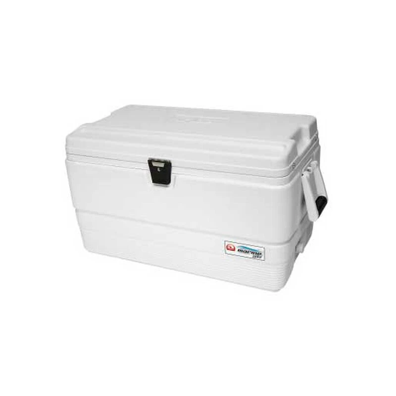 Designed with Ultratherm® insulated body and lid, the Marine Ultra Cooler keeps ice frozen up to five days. Igloo’s virtually indestructible stainless steel hinges provide durability while the durable swing-up handle grips allow for easy lifting and transportation. UV inhibitors and infrared technology protect the cooler from sun damage so you can take it with you to all your outdoor festivities. The threaded drain plug enables easy draining and hose hook up while the fish keeper scale on the lid lets you measure your catch when fishing. Finally, with Igloo’s built-in molded lid ruler for quick and easy measuring, you can make sure the fish you caught is big enough to keep.