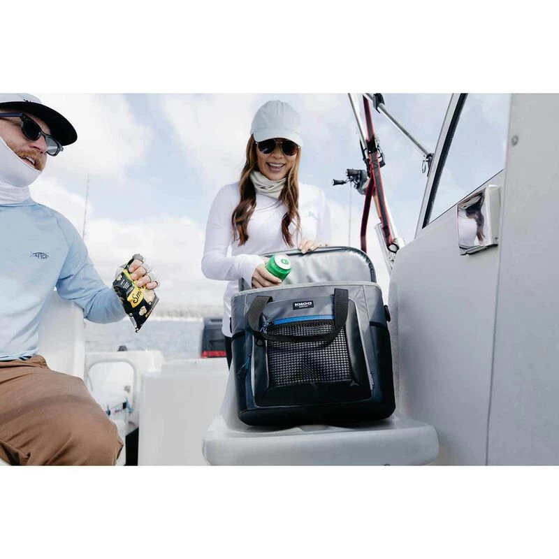 Featuring a full suite of marine-grade features, from UV protection to ultra-thick puncture resistant fabrics, the Marine Elite line is built to withstand harsh, wet conditions and keeps your drinks and snacks cold and fresh. Combine and stack with the Marine Elite 36 Can Extreme Rolling Cooler for maximally convenient transport!