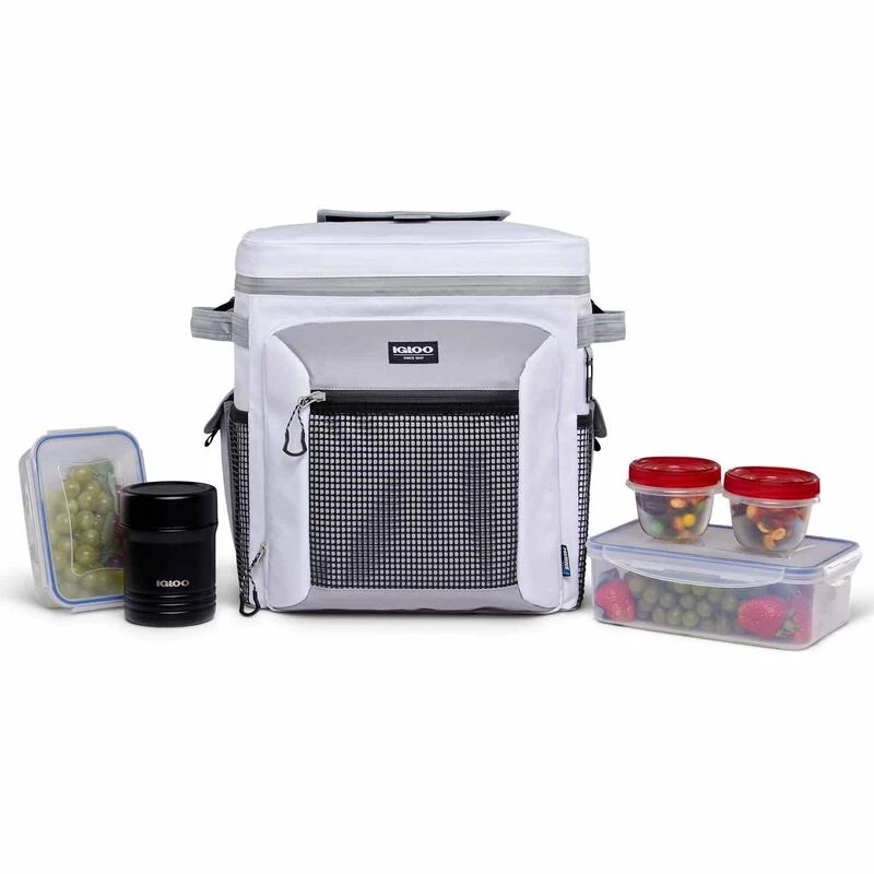- Built-out insulated lid with top hatch for quick access to food and drinks