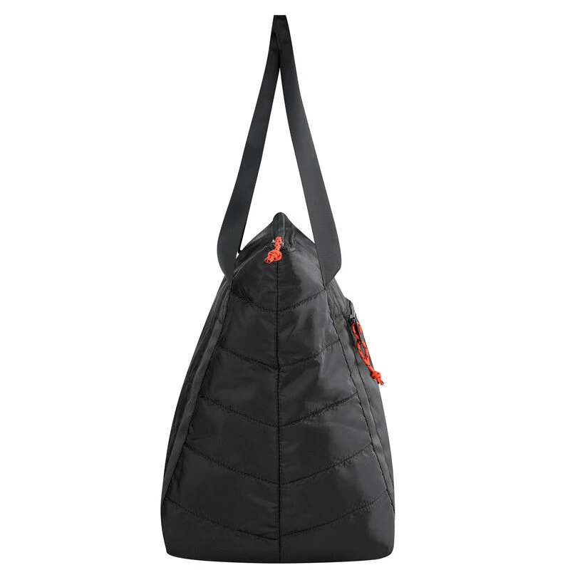 The compressible construction lets you scrunch this bag into its own front pocket! That way, when it’s empty and you’re done using it, you can easily pack it away or use the included carabiner to attach it to a backpack, bike basket, etc.
