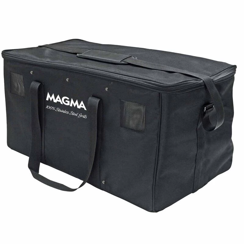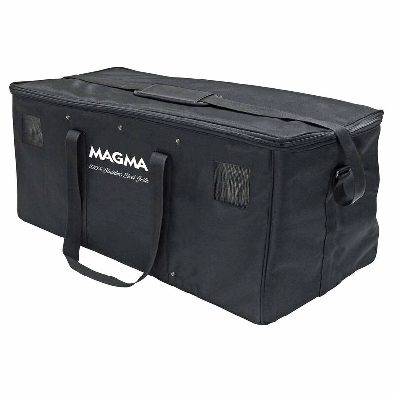 MAGMA Padded Grill Carrying Cases conveniently store and transport your grill and accessories. Designed to keep everything in one space-saving location. A large compartment holds the grill with pockets for storing a serving shelf, griddle or fish/veggie tray. Side pocket holds propane canisters. Thick padding for maximum protection and heavy-duty handles and shoulder strap for carrying from harbor to backyard barbecues in comfort.
