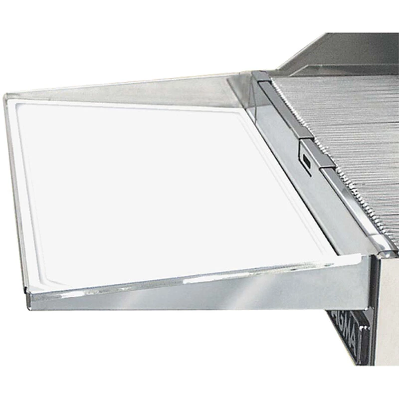 Quickly and easily attach for bonus serving space and instantly detach for storage and easy cleanup. Secure 18-8 stainless-steel shelves include UV-stabilized, FDA-approved polyethylene cutting boards. Conveniently store inside grill when not in use. For use with Catalina, Monterey, ChefsMate and Newport marine grills.