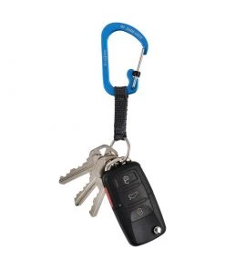 This key holding solution pairs a secure solid aluminum #3 SlideLock Carabiner with a durable key ring and joins them with a strong nylon webbing strap. This combination creates a great way to keep keys connected, yet separate. The Carabiner can be clipped and locked to anything like a belt loop, backpack or water bottle, while the key ring hangs freely from the webbing strap.