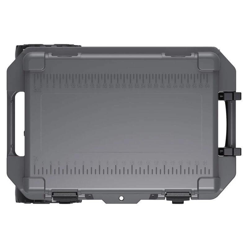 Pelican Elite 45 Quart Wheeled Cooler. Full 45 Quart internal acpacity. Up to 10 days ice retention, freezer grade gasket, 2″ polyurethane insulation. Press & Pull Latches (Wide for Gloved Use). Integrated Fish Scale on Lid. Heavy duty wheels.