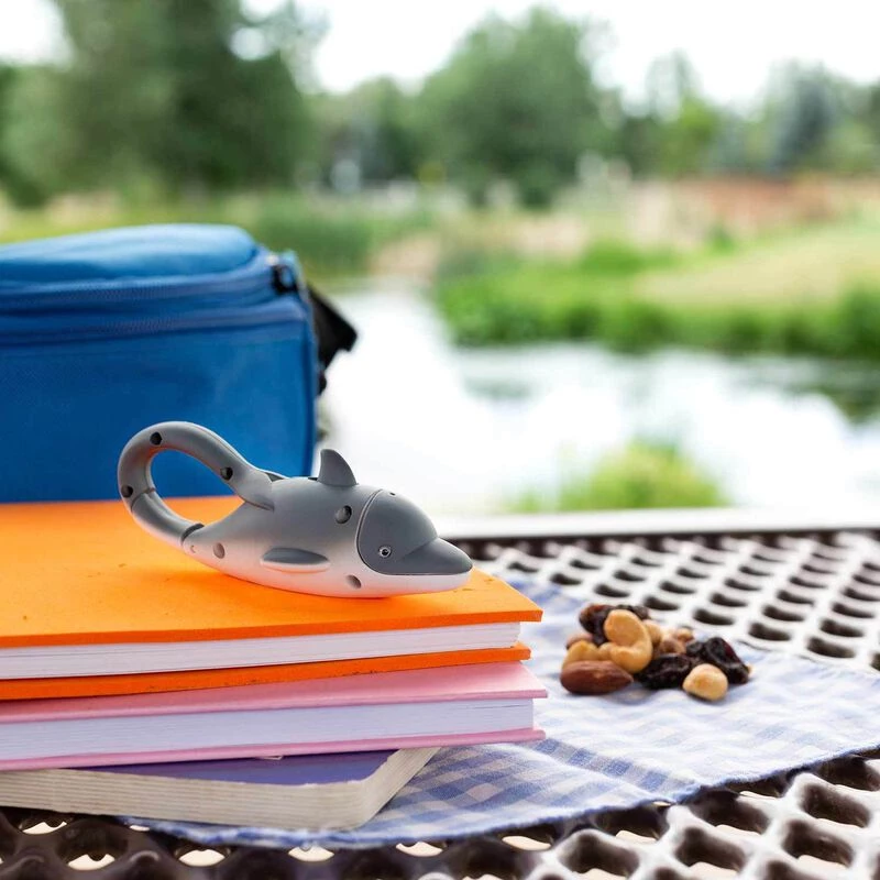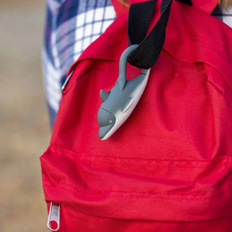 Push its back for a stream of super-bright, white LED light straight from the creature’s mouth! Spring-loaded tail is a carabiner clip for quick clipping to key rings, bookbags and more.