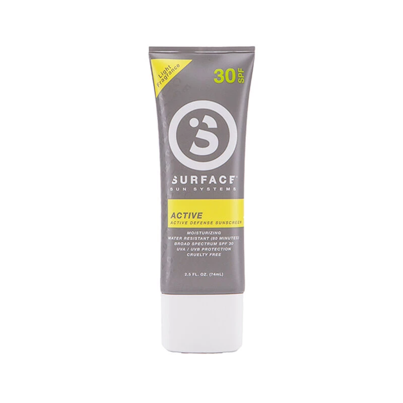 Surface Active Sunscreen is a defensive product line developed for athletes, adventurers and fans who need a sunscreen capable of handling the different activities they do on any given weekend. From land to water, Surface Active Sunscreen is built to withstand sweat and water while protecting you from the harshest of elements.Â