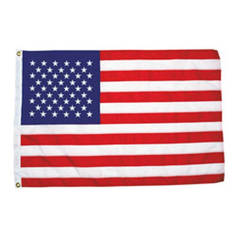 Durable nylon flags are made for marine use. Sewn flags feature embroidered or sewn stars and double-stitched stripes for added strength.